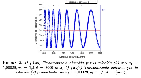 El comportamiento de la transmitancia para ambos casos en términos de la longitud de onda λ es representado en la figura 2.