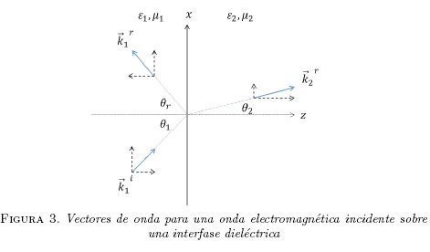 , los vectores de onda para cada medio se pueden expresar como [5]