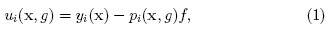 corresponde a la ganancia bruta del individuo i, que depende de si este delinque o no, y del perfil delincuencial de la población. Por otra parte,
