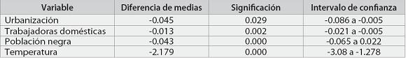 - El ejercicio. Nuestro objetivo era considerar si existía alguna diferencia socio-económica entre los municipios establemente liberales (MEL), los establemente conservadores (MEC), y los demás. Los MEL votaron liberal en las tres elecciones, los MEC votaron conservador, y los demás dividieron su voto de una u otra manera. La herramienta natural para responder a la pregunta es un análisis de varianza multivariado (23). Lo que se obtiene de él es lo siguiente: ver si el promedio por variable relevante, controlando por las otras, de cada una de las categorías consideradas es diferente. Por ejemplo, quisiéramos saber, de acuerdo con lo discutido arriba, si el promedio de población urbana era significativamente más alto en los MEL que en los otros.