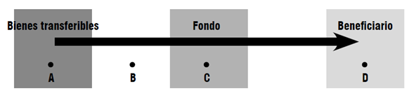 En el país se han creado varios fondos de bienes, uno de cuyos objetivos rutinarios ha sido dotar de tierras al Estado para que este a su vez pueda contribuir a una reforma agraria. En principio, el proceso es relativamente fácil de representar, como se ve en el gráfico 1 : hay unas tierras de las cuales el Estado puede disponer, sean baldíos o bienes de particulares, tomados bajo la figura de la extinción de dominio, la expropiación o la compra, y ellas a su vez se transfieren a beneficiarios de políticas públicas específicas, como la reforma agraria (o “rural integral”). Esto implica que el bien atraviesa potencialmente tres estados institucionales y pasa por cuatro puntos. Primero, el bien tiene un carácter transferible (por ejemplo, es un baldío o está en manos de un actor ilegal: estado 1). El Estado lo toma y lo transfiere a algún fondo, por ejemplo (estado 2). Este a su vez lo asigna a un beneficiario (estado 3). Desde el punto de inicio (“A” en el gráfico), el bien pasa a un proceso judicial o administrativo (durante el cual puede por ejemplo quedar en manos de un secuestre8, “B”), después llega al fondo (“C”) y finalmente al beneficiario (“D”).
