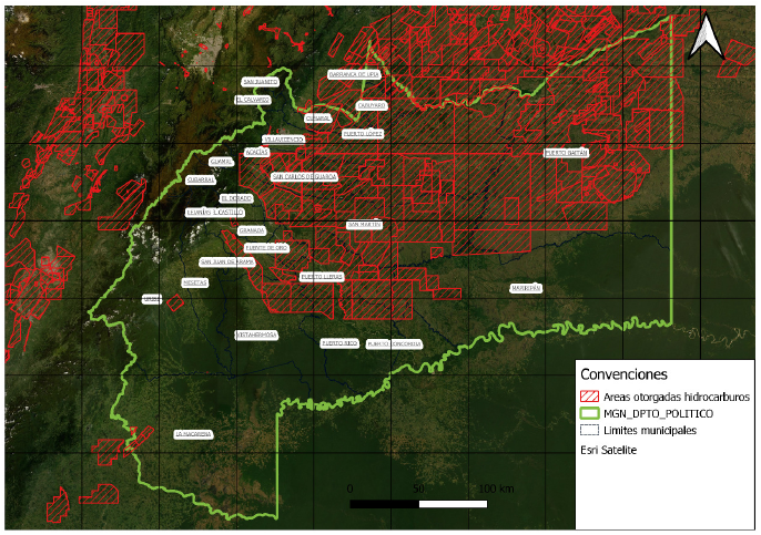Mapa 1 Áreas licitadas para la extracción de hidrocarburos en el Departamento del Meta.