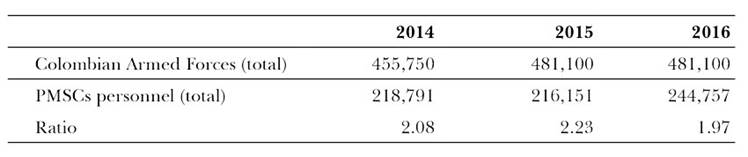 Table 2 Comparison of PMSC personnel vs Armed Forces in Colombia