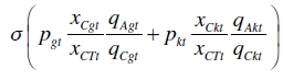 donde σt es la tasa de cambio; xCTt, los ingresos generados por las exportaciones colombianas; xCit, los ingresos generados por las exportaciones del producto i; qAit, la producción del bien i en Antioquia; y qCit, la producción del bien i en Colombia. El valor pit sería el precio internacional del bien i; PAt, la población de Antioquia; y PCt, la población colombiana. Todo esto para el periodo, t.