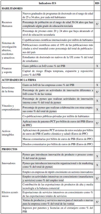Tabla 2 Indicadores de Eurostat: IUS y RIS