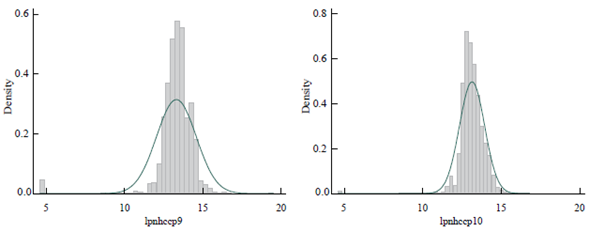 Figure 4 Distribution of Log Hypothetical Lease Value (left) and the Effective Lease Value (right) for Bogotá D.C.