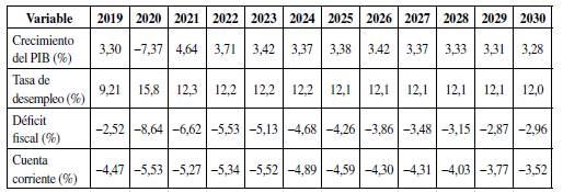 Tabla 3 Resultados del escenario pandemia en las principales variables macro en Colombia