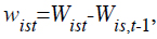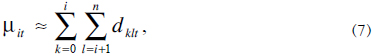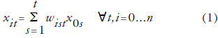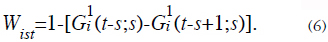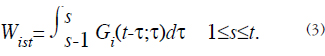 y suponemos que la distribución no cambia mucho en el periodo s = τ = s + 1, entonces G(t - τ, τ) se puede reemplazar por G(t - τ, s) en (3). En este caso los pesos acumulativos vienen dados por (ver [15])