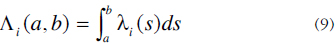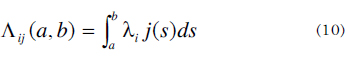 Por conveniencia, definiremos las siguientes funciones, que calculan el valor esperado de arribos en el intervalo (a, b) a la estación i y de aquéllos con destino j, respectivamente.