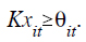 donde Wist es la fracción o porcentaje de buses despachados durante el periodo s que han pasado por la estación i durante el periodo t. Más adelante explicaremos cómo se calculan estos pesos conociendo la distribución del tiempo de desplazamiento de los buses entre estaciones. Supondremos una flota uniforme de capacidad K y llamaremos θit la oferta mínima aceptable en el segmento de ruta i durante el periodo t (es decir, entre estaciones i -1 e i). Tal como explicaremos adelante, el valor de θit se puede obtener a partir del comportamiento estocástico de la demanda. La restricción de servicio puede, por lo tanto, escribirse como: