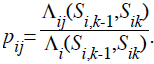 Cada arribo a la estación i durante el periodo t tiene destino j con probabilidad