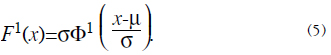 donde F y f denotan, respectivamente, la función de distribución acumulativa y su correspondiente densidad, mientras que para una normal con media μ y desviación estándar s