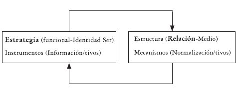 La incorporación de estas distinciones permite entender cómo el enfoque estratégico del control no se agota en lo que es funcional al sistema [10], pues los sistemas tienen la particularidad de seleccionar su entorno en la medida de sus propias posibilidades estructurales; en otras palabras, todo sistema observa su entorno a partir de su propia función (i.e. identidad [11]).
