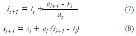 A su vez, el tiempo incremental de recorrido y la distancia recorrida en forma incremental son funciones de la velocidad y la aceleración, y están dadas por [5] :