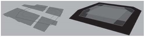 We are also developing an Air Quality Model (AQM), in order to provide a Computer Fluid Dynamics infrastructure based on the Lattice Boltzmann Method (LBM), to an air quality simulator. The AQM needs information about the land lots and the buildings on them, and the streets on each Voronoi polygon, in order to feed the LBM with a group of solid obstacles which oppose the air flow. It is planned for the AQM to be supplied with sources of pollutants from the urban mobility simulator, using the automobile vehicle actors. Fig. 4 illustrates a Voronoi Polygon with rendered buildings from the land lots data and air parcels over the streets space.