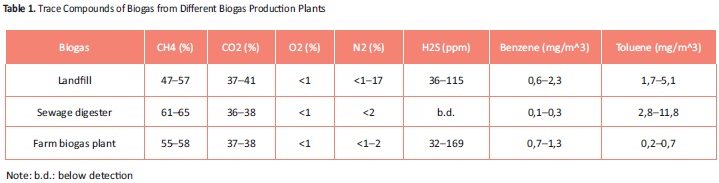 Tabla 1. Trace Compounds of Biogas from Diferent Biogas Producton Plants