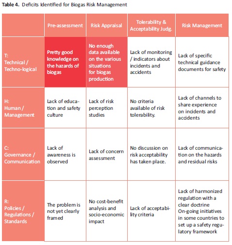 Tabla 4. Deficits Identfed for Biogas Risk Management