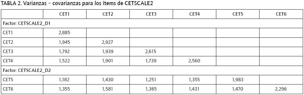 CET. El número de factores es el mismo para ambas muestras y el ajuste es bueno para la solución para cada grupo. Lo mismo sucede cuando se analiza la Equal Form Invariance o invarianza configural. Al añadir la restricción de la igualdad de cargas factoriales el ajuste del modelo no empeora significativamente, por lo que se cumple la invarianza métrica también.