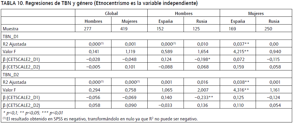 El rol del sexo del consumidor en la relación entre el CET y la TBN