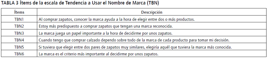 Tendencia a usar el nombre de la marca (TBN). La Tabla 5 muestra las fiabilidades (calculadas con α de Cronbach, fiabilidad compuesta (IFC) y varianza extraída (AVE) que están por encima de los mínimos señalados por la literatura (Nunnally, 1978; Nunnally y Bernstein, 1994) y del 50% para el AVE .