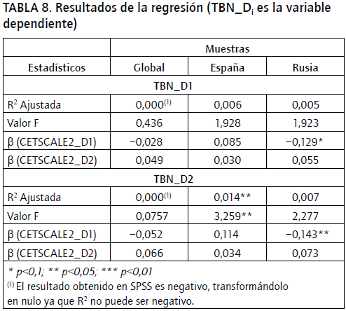 H1: El CET tiene un efecto directo y negativo sobre la TBN del consumidor tanto en el caso de los consumidores españoles como en el caso de los rusos.