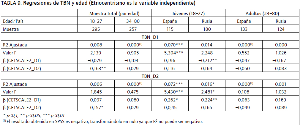 Asimismo, la literatura ha presentado que las percepciones de los consumidores de marcas se ven afectadas por el etnocentrismo (p. ej., Kaynak & Kara, 2002; Kinra, 2006). Cabe señalar que la mayoría de estos estudios se han realizado en países con larga tradición de consumo (p. ej., Cleveland, Laroche & Papadopoulos, 2009) o, más recientemente, en países como China o Tailandia (p. ej. Liu et al., 2006). Sin embargo y pese a su importancia, no hemos encontrado estudios que (a) analicen la influencia que tiene CET en la tendencia a utilizar BN por los "nuevos consumidores" (de los países que se están uniendo a la sociedad de consumo) frente a los consumidores con una larga tradición de consumo (p. ej., de países europeos); (b) observen si este efecto es mayor o menor para los primeros que para los segundos y, finalmente, (c) determinen qué papel juegan las principales variables demográficas (edad y género) en la relación entre CET y TBN.
