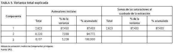 Asimismo, en la Tabla 5 se puede observar que el componente identificado como gestión del conocimiento logra explicar el 87,4% de la varianza.