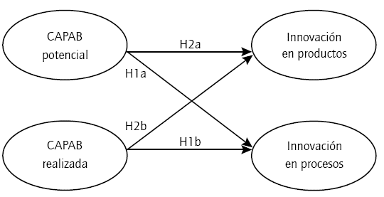 Además, de acuerdo con Leal-Rodríguez et al. (2014), se determinó la influencia tanto de la CAPAB potencial como de la realizada sobre los resultados de innovación. Confirmando lo anterior, existe una relación directa entre la composición de la CAPAB y los resultados del proceso innovador. En consecuencia, y con base en los argumentos presentados, se proponen las siguientes hipótesis de investigación: