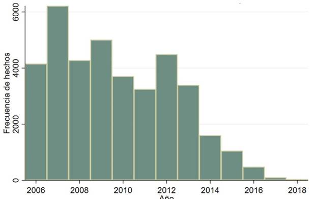 Gráfica 1 Frecuencia de hechos entre 2006 y 2018.