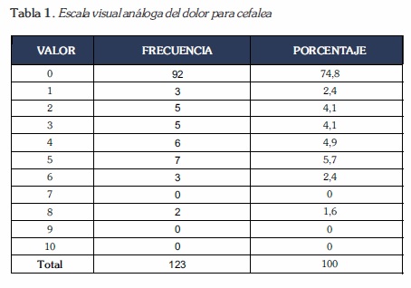 La evaluación de la cefalea y de la disnea/fatiga realizada con la escala visual análoga del dolor y la escala de Borg se muestran en la Tabla 1 y 2 respectivamente.