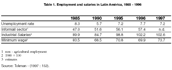 Tokman, Victor. 1995. "Generación de empleo y reformas laborales," Anuario Social y Politico de America Latina y El Caribe (Facultad Latinoamericana de Ciencias Sociales (FLACSO) 1: 151-58 [ Links ]