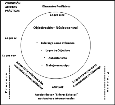 Las representaciones sociales se configuran a partir de un fondo cultural que circula en la sociedad y proporciona las categorías básicas a partir de las cuales se constituyen, es decir provienen de fuentes de determinación que incluyen condiciones económicas, sociales, históricas y el sistema de creencias y valores de una sociedad dada, aunque se definen por su contenido (informaciones, imágenes, opiniones, actitudes). A la vez, dicho contenido se relaciona con un fin, como ser un trabajo a realizar o alguna otra cuestión enlazada con el pensamiento de tipo "práctico". El acto de comprender o explicar el objeto de estudio se enfrenta al conocimiento previo o representaciones acerca de la competencia liderazgo, a través de las creencias, opiniones, juicios en el colectivo de los gerentes venezolanos.