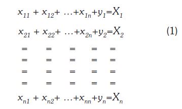 De la expresión (1) se puede desprender la asignación de la producción que es la suma por renglones de la matriz de relaciones intersectoriales, esto es: