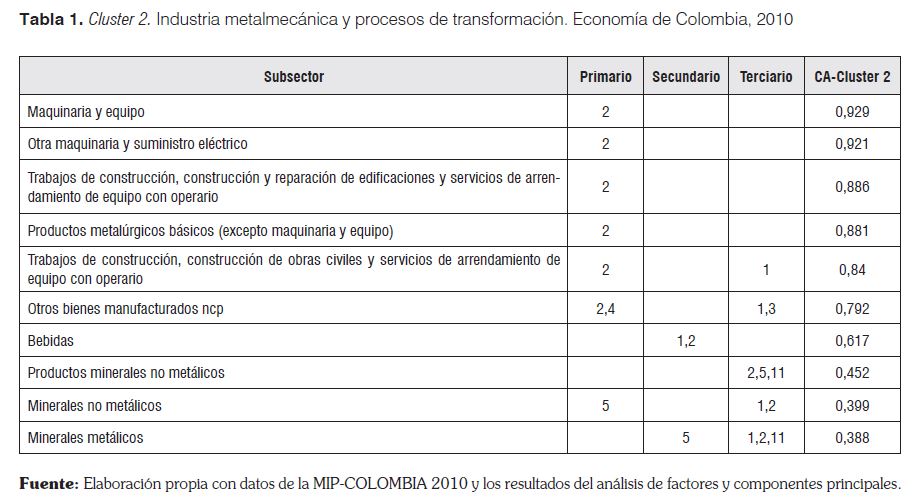 2 La fuente directa para la conformación de clusters para Colombia es la MIP-COLOMBIA2010 proveída por el Departamento Administrativo Nacional de Estadística (DANE) de Colombia. Volver