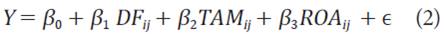 Na medição do DM, a variável y permite mensurar avaliação de mercado da empresa. Com isso, espera-se que tanto a DF como as variáveis de controle auxiliem na análise da variação.