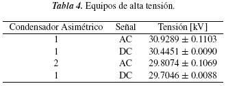 En la tabla 4 se presentan los resultados obtenidos al aplicar una tensión a los prototipos en corriente alterna y directa.