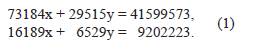Puede comprobarse que las verdaderas respuestas de este sistema son xv = 272 e yv = 735.