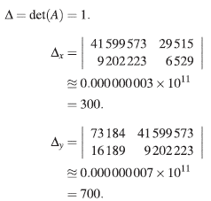 Ahora se resolverá este sistema, usando aritmética de diez dígitos significativos (esta es la aritmética que se utiliza en una gran variedad de calculadoras científicas), trabajando con el método de Cramer.