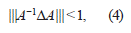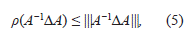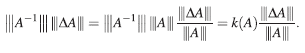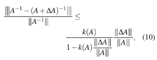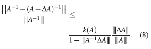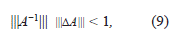 Si |||A−1||| |||ΔA||| no sólo es menor que 1, sino que es mucho más pequeña que 1, entonces, la expresión del lado derecho en (10), sería muy cercana al valor,