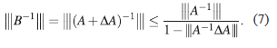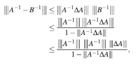 Además, B−1= A−1−A−1(ΔA)B−1, de donde,