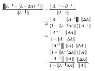 Supóngase que se quiere resolver el sistema lineal Ax = b, con A una matriz invertible de ℳ n y b un vector no nulo de ℂ n . Sin embargo por los errores computacionales, en realidad se va a resolver el sistema perturbado