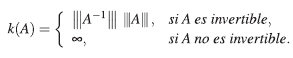 Definición 10. Sean A una matriz en ℳn y |||∙||| una norma matricial dada, el número de condición de la matriz A con respecto a la norma matricial |||∙|||, se define y denota por: