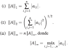 Ejemplo 2. Dada A є M n , las funciones definidas como siguen, son normas matriciales sobre C.