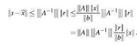 , |||∙||| la norma inducida por ||∙||, s la solución exacta de Ax = b y r = b A