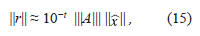 Si se asume que la solución aproximada del sistema Ax = b se determina usando aritmética de t dígitos y eliminación gaussiana, en IEEE Computer Society, 2008 [7], demuestran que el vector residual r de la aproximación satisface,