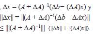 Si nuevamente se asume |||A −1 ||| |||ΔA||| < 1, entonces,