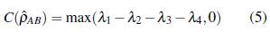 los λ i (i = 1,2,3,4) son valores propios, en orden decreciente de la matriz densidad no hermítica R , con