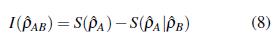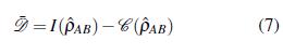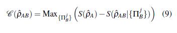 El entrelazamiento no es la única medida de las correlaciones cuánticas, por lo tanto se estudia un enfoque que cuantifica todas las correlaciones no clásicas presentes en un sistema además del entrelazamiento, la Discordia Cuántica es dada por la diferencia de información mutua y las correlaciones clásicas así [9, 10]: