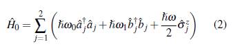 son los operadores aniquilación (creación) de los modos en cada cavidad, ω es la frecuencia de transición de cada átomo,