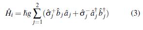 Ĥ i corresponde al Hamiltoniano de interacción de cada átomo con los dos modos de la cavidad,